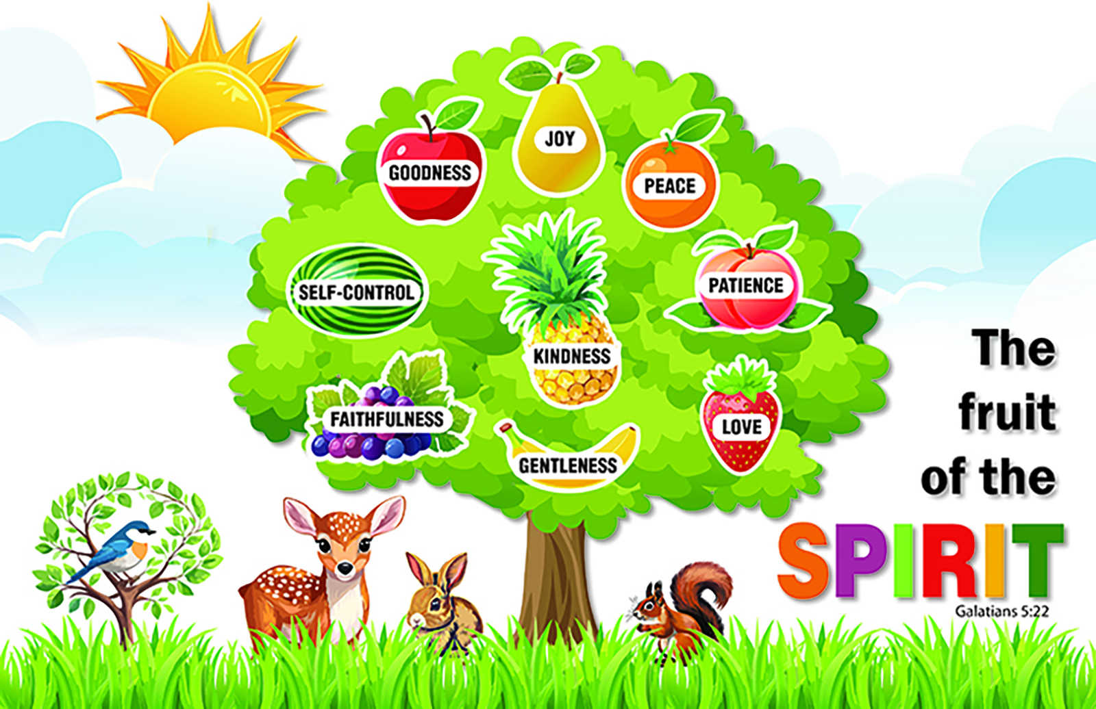 ‘The fruit of the Spirit’ game: the fruits are removable, and the game starts with a bare tree. Children choose a fruit and then the quality is explained, and they are encouraged to give examples of how this quality could be put into practice. Then they stick their fruit to the tree (the fruit is attached with Velcro or similar). PDF Comes with two separate files and can be run off at Staples or similar on card stock and laminated. The fruit will need to be cut out and Velcro applied to the fruit and the board. Page 1 of the PDF shows the completed tree, pages 2 and 3 are the artwork for printing on card stock.